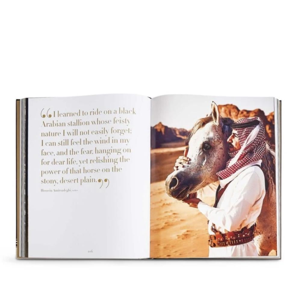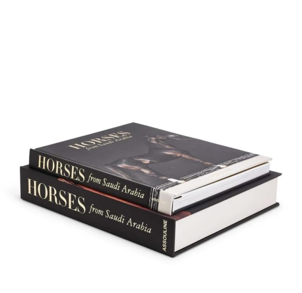 يمثّل هذا الكتاب من آسولين تحفة حقيقية بتصميمه ذي الغلاف المقوّى أسود اللون المطبوع بتقنية الشاشة الحريرية، حيث يحمل الذهن إلى عالم الفروسية الآسر في المملكة العربية السعودية بكل ما تنطوي عليه من قيم الشهامة والنبل والاحتفاء بالحصان العربي الذي لطالما كان رمزًا للشموخ والأصالة في كل أنحاء العالم. أما لون علبته الخارجية، المطبوعة أيضًا بتقنية الشاشة الحريرية، فهو مستوحى من حجر السبج الذي يوحي بالرقي والغموض، بينما يحاكي السطح الحريري القماشي الخطوط الانسيابية لهذه الكائنات المهيبة. إن كنت من عشّاق الخيل الأصيل، فلا شك بأنّ هذه التحفة ستجد طريقها إلى قلبك بكل خفّة.
