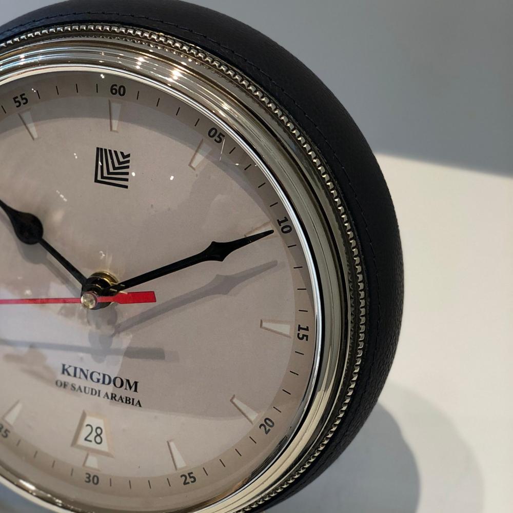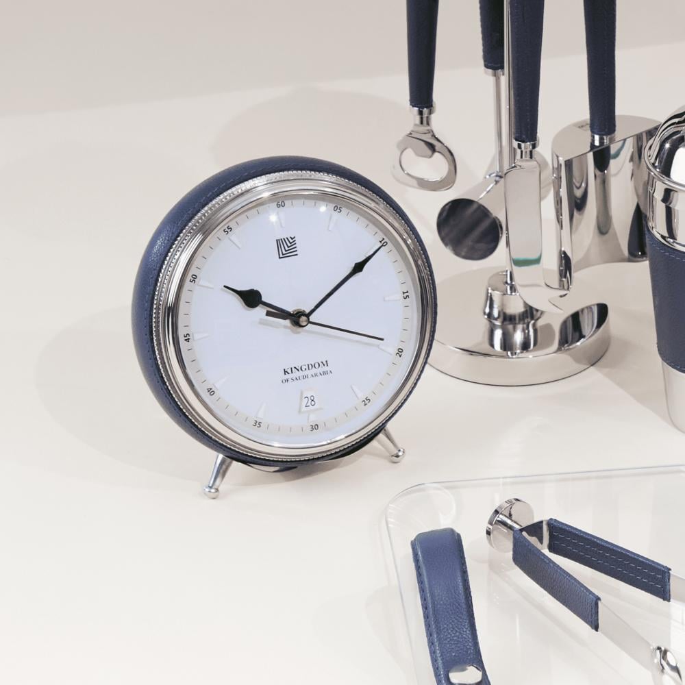 ساعة مكتبية انيقة بلمسة من الجلد لتضيف لمسة عصرية على مكتبك باللون الأزرق