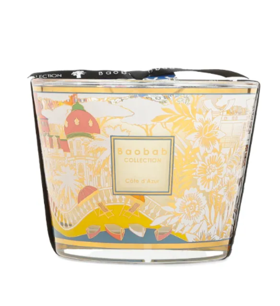 استُلهم ديكور شمعة كوت دازور المطبوع بتقنية الشاشة الحريرية من بعض عناصر تصميم تييري لارشيه، مثل نيغريسكو وشارع بروميناد ديزونغليه الأسطوري. أردنا أن نخطو خطوة أبعد من خلال دمج عناصر معمارية من مدينتي مينتون وسان تروبيه. في المناطق النائية، يمكنك تخيل غابات الصنوبر المظللة، والحلم بزيارة مؤسسة مايغت في أعالي سان بول دو فونس.
