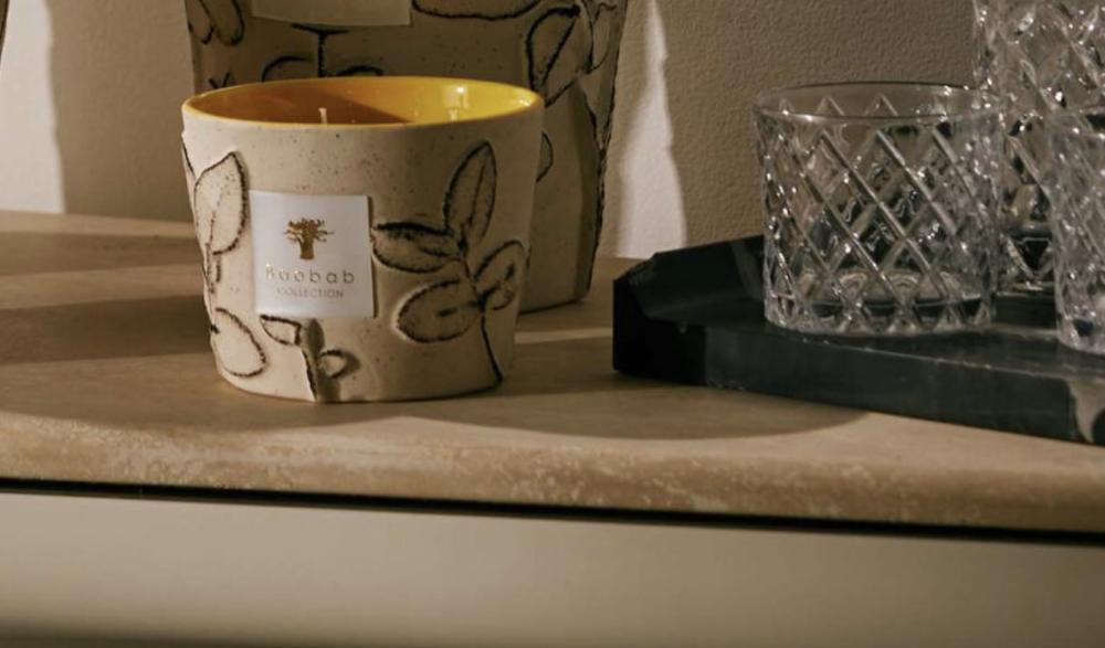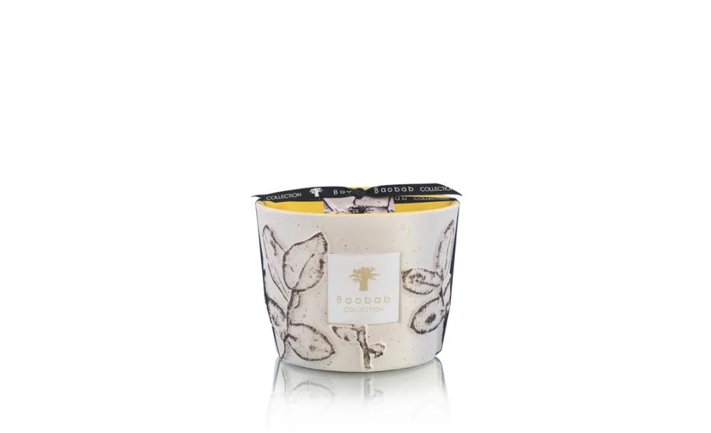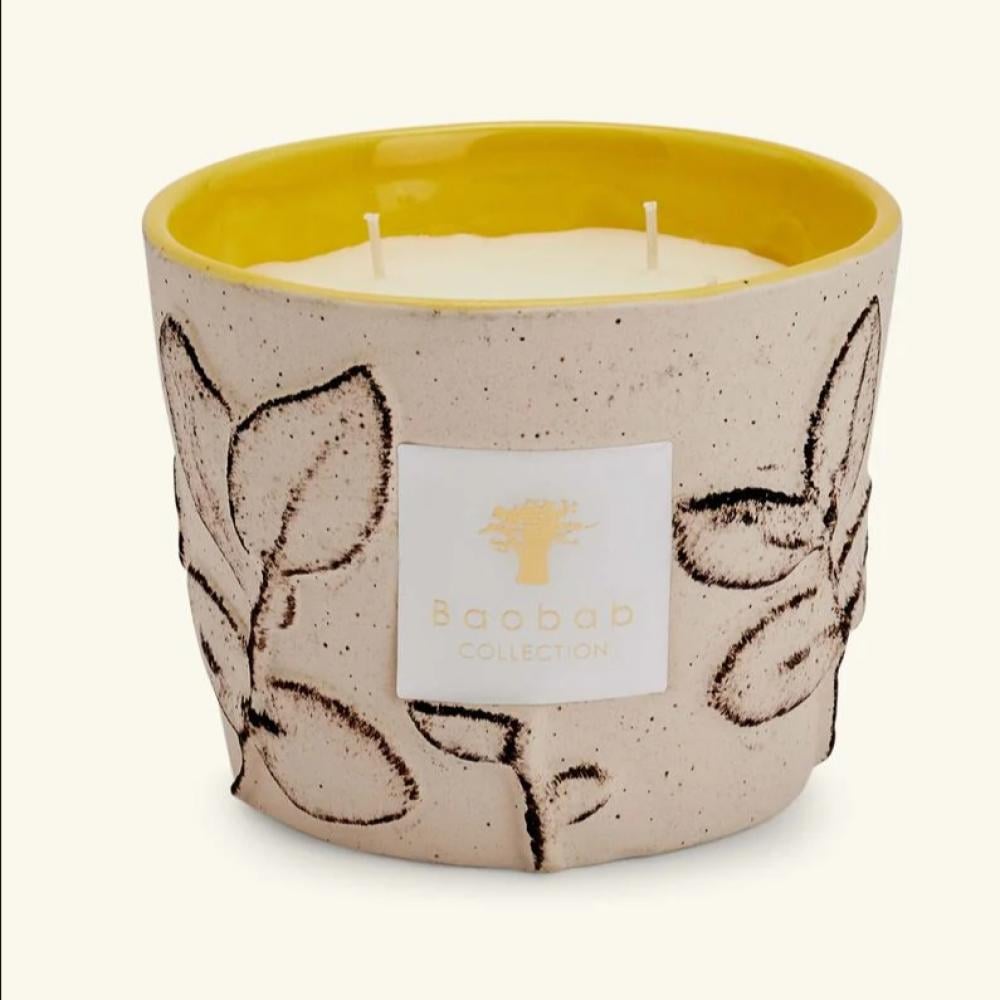 شمعة كالانك المعطرة، بلون سيراميكها الأبيض غير اللامع، تُشيد بالصخور الرائعة التي استُمدت منها اسمها. تُزهر الزخارف النباتية، على شكل أوراق الكينا، المصنوعة يدويًا على يد خزافين برتغاليين، على الجدران كتحفة فنية. في حين أن السيراميك مطلي بطبقة خارجية بيضاء غير لامعة، فإن الجزء الداخلي مطلي بطلاء أصفر لامع، مما يمنح القطعة تأثيرًا متباينًا، يُذكرنا بلون شمس البحر الأبيض المتوسط.