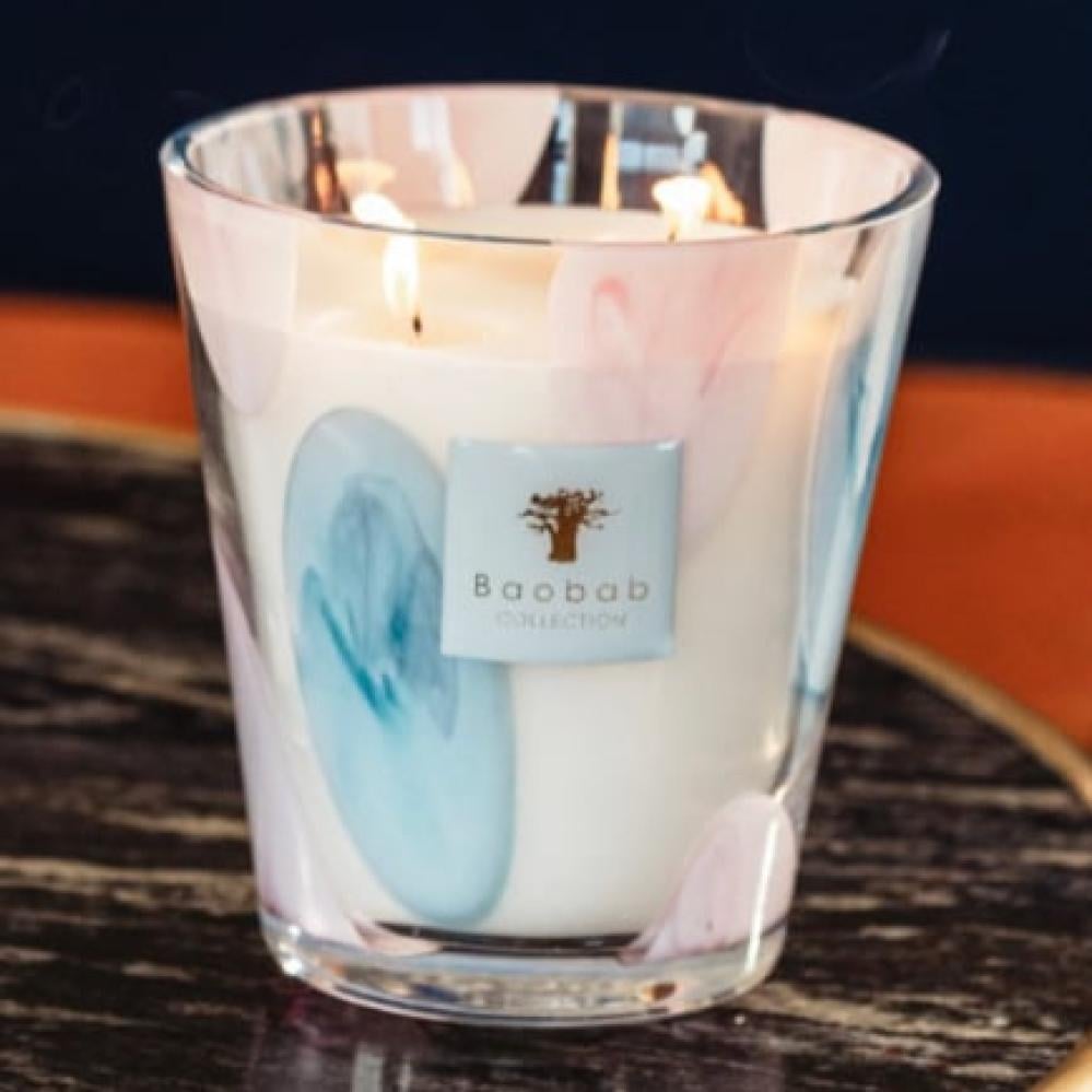 يتزين الزجاج الشفاف لشمعة ليوبولدا المعطرة بأشكال بيضاوية وردية وزرقاء سماوية تظهر عشوائيًا على الزجاج، كفقاعات عائمة. هذا المزيج من الألوان والشفافية هو تعبير مثالي عن مهارة صانعي الزجاج لدينا.