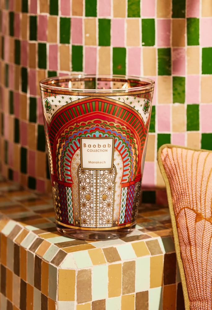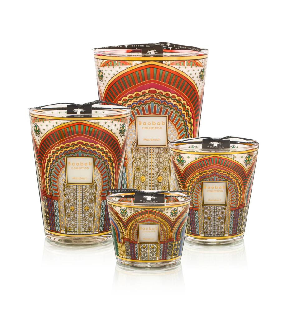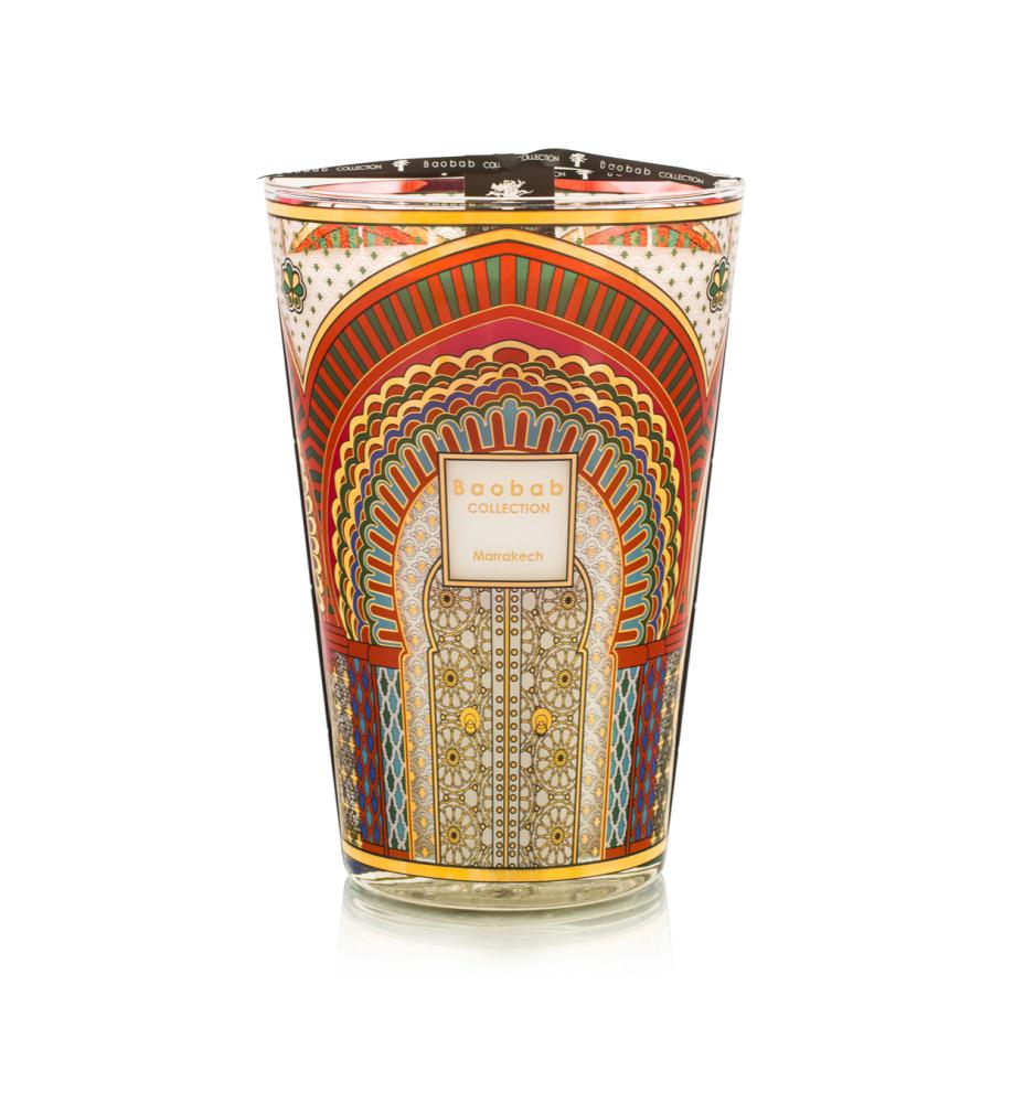 تم رسم أبواب مدينة مراكش على زجاج شمعة مراكش المعطرة في تفسير ثمين وملون. أردنا أن تلتقط هذه الشاشة الحريرية الألوان الرائعة لزخارف قصر مراكش والسيراميك الفاخر أو التصاميم الجصية للآثار الرمزية للمدينة. مثل الدانتيل، تبرز زخارف الأبواب، لتشكل أشكالًا راقية.