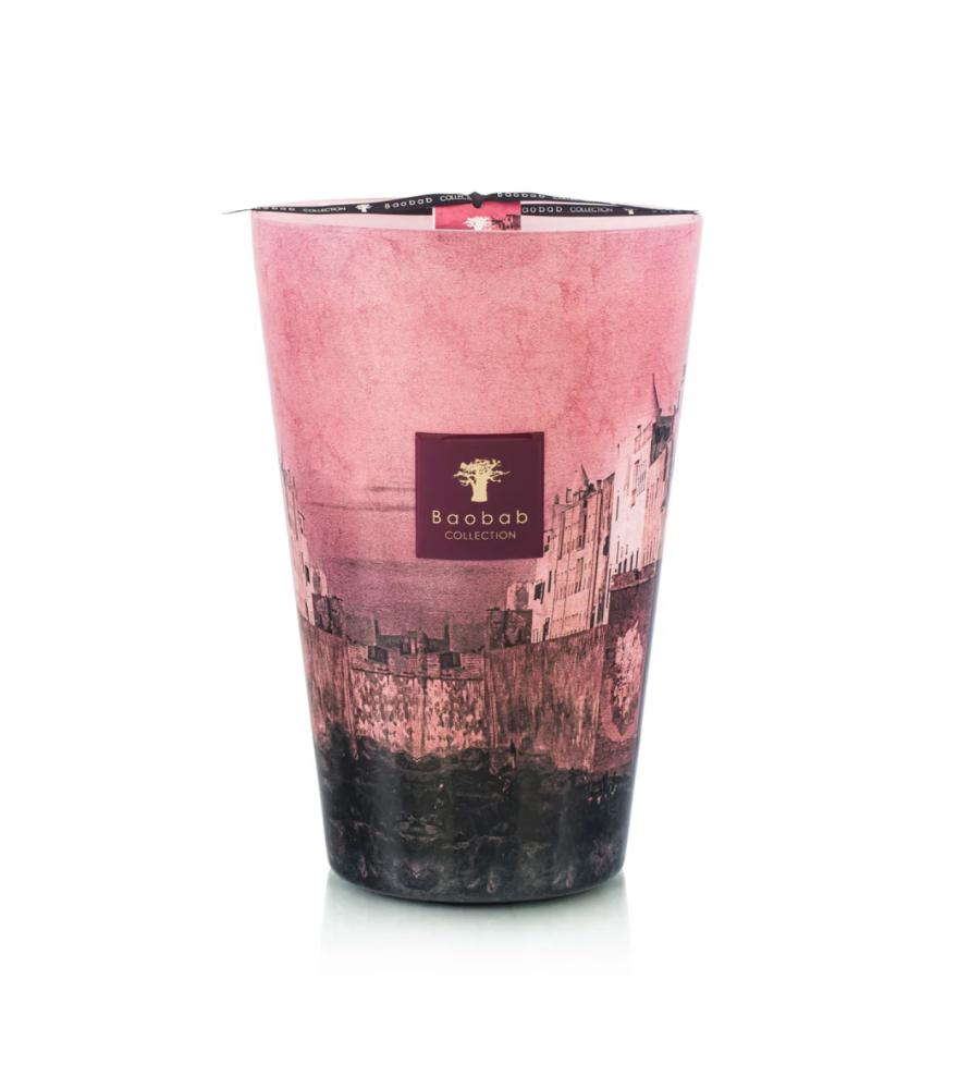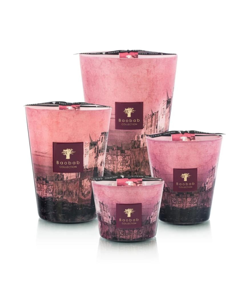 الزجاج المتسامي لشمعة الصويرة المعطرة ملون باللون الوردي. تنغمس المدينة في سحر المصور عند غروب الشمس. ويمكنك رؤية أسوار المدينة والتجانس المذهل في هندستها المعمارية. تكاد تكون الألوان الناعمة التي تخيلها الفنان تذكرنا بالانطباعية.